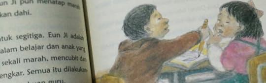 Permasalahan yang ditampilkan dalam buku ini juga tidak membuat perasaan sedih itu hilang. Mendapat ejekan, perlakuan tidak menyenangkan dari teman sebaya, bahkan dari guru yang notabene adalah sosok yang mengajari anak-anak di sekolah membuat saya berpikir jika kehidupan masa anak-anak pun terkadang menjadi berat karena belum memiliki keterampilan yang memadai yang mungkin idealnya dikuasai oleh anak seusia Sam Di Gi