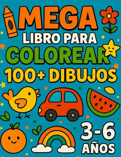 Mega Libro para Colorear Niños 3-6 Años: 100+ dibujos grandes y fáciles: 100+ dibujos grandes y sencillos, sin páginas en blanco, ideal preescolar e infantil