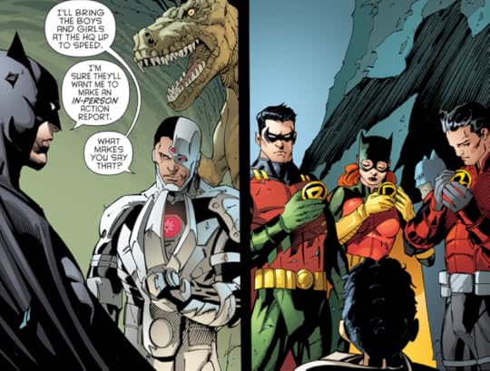 Robin Rises was the story arc that followed Batman's journey to the planet Apokolips right after making a decision to resurrect his son once that opportunity became ripe and possible for the taking. Though the Justice League themselves were on the fence about the ordeal, Batman carried on with this mission though he also made sure that he was doing it for the right reasons; better reasons than those he had when he was still in denial and grieving his son. The one-man crusade was not a solitary undertaking, however, because Alfred chose to also commission the rest of the Bat-family (Batgirl, Red Hood and Red Robin) to follow Batman to Apokolips and assist him in any way that they can. Sporting some badass Robin-themed suits, the trio were accompanied by Damian's pet dog Titus and a reluctant Cyborg.