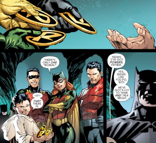 This closes the Robin Rises chapter of Bat man and Robin with a returned Damien returning to his role as son and student. A good emotional moment in the series but not much action.
