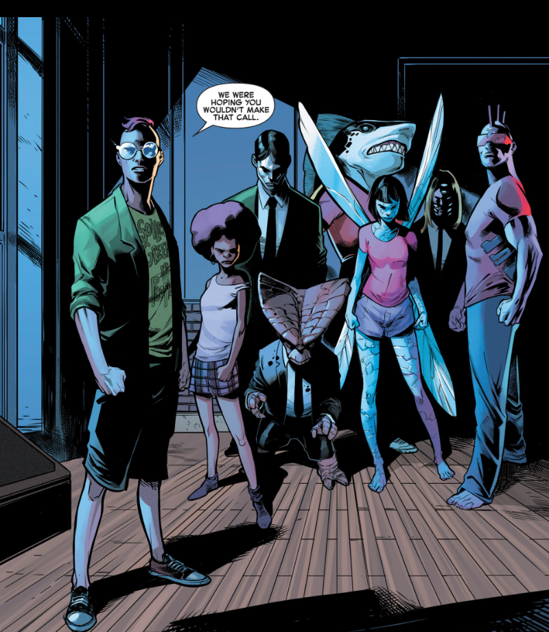 Meanwhile, issues #39-40 gave us more amazing scenes and plot concerning the new students who just enrolled in JGS; the Brickmore twins known as Tri-Joey and Squidface. After their initiation to the school where Tri-Joey (Joseph) actually enjoyed becoming friends with a lot of the students, the twins were revealed to be moles for S.H.I.E.L.D., and Squidface (Josephine) was adamant in having JGS closed for good. The siblings were actually normal humans who just took mutant growth serum so they can masquerade inside JGS. As they plan their uprising, it turned out that they have been discovered from the start and everyone was simply trying to give them a chance to change their mind about JGS. Quentin, Broo, Idie, Eyeboy, Genesis, Kid Gladiator, Shark Girl and Sprite all agree that they are all strange and weird and odd and although their school has a sentient lawn and a murdering bathroom, and a lot of people are trying to kill them on a weekly if not daily basis...