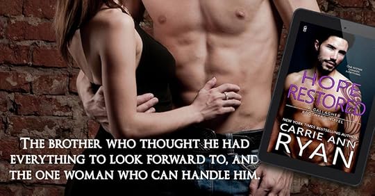 HOPE RESTORED was breathtaking, heartwarming, funny and intriguing. It's the third and finale book in Carrie Ann Ryan's GALLAGHER BROTHERS series. Loved this series from the first book and to see it end the way it did was a delightful treat.