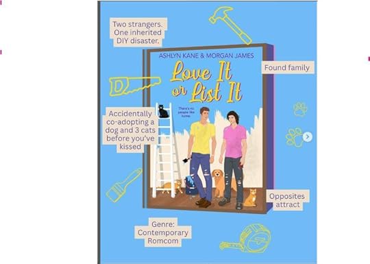 Love It or List It is a stand alone, MM romance by Ashlyn Kane and Morgan James. This is my first book by either of these authors. This was a sweet, slow burn romance.