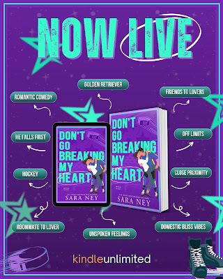 Sara Ney’s Don't Go Breaking My Heart is a chaotic, hilarious, and irresistibly swoony romantic comedy that kicks off the Houston Baddies series with a bang. The story follows a smart, independent woman (Poppy) who relocates to a new city for a fresh start and ends up renting a room in a suburban palace - complete with a wine fridge, a pool, and a stove that probably costs more than her car. It sounds perfect until she meets her new roommate: Turner “Skaggs” Hutton III, a hockey player with Viking looks and golden retriever energy. From the moment he accidentally sees her nearly naked, their dynamic is a rollercoaster of awkward encounters, sizzling chemistry, and laugh-out-loud disasters.