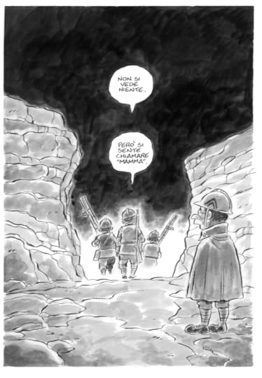 Che libro!!! Mi viene davvero difficile dire la mia su questo fumetto che, per me, è stata una vera sorpresa. Non conoscevo l’autore (mea culpa), ma mi ha incuriosita la trama e l’ho preso sulla fiducia. Ragazzi miei, questo libro è solo da leggere, in silenzio, e col cuore in gola per il destino di tanti tantissimi giovani di 20 anni che hanno sacrificato la loro vita per… per.. per… non lo sapevano nemmeno loro perché, ma gli veniva detto per la patria, per il re, e andavano a morire gridando “Savoia”! Io sono rimasta molto scossa.. La prima guerra mondiale sembra lontanissima a quelli della mia generazione, e lo è, ma i nonni di alcuni di noi c’erano e l’hanno vissuta. Sfortunatamente non posso vantarmi, per svariate ragioni, di aver ascoltato le storie dei miei nonni, e ammetto di sapere davvero poco di quella guerra. Come dicevo, sembra lontana.. In questa graphic novel si racconta la battaglia dell’Ortigara, in cui l’Italia combatteva contro gli austri ungarici. È stato un massacro, nelle trincee e fuori. I soldati avevano paura, non volevano combattere, bevevano per sbronzarsi e per trovare il coraggio di andare ad essere macellati in seguito agli ordini del generale Cadorna, tra gli altri.. l’ho letto in due giorni, mi ha emozionata e lo consiglio vivamente, e no, non è una lettura leggera.. eppure l’autore riesce a far sorridere nella drammaticità delle situazioni, un genio!