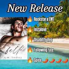 The Night We Fell is a stand alone, MM, New Year’s romance by E.M. Lindsey. I decided to pick this up because I loved the sound of the blurb. I do love rock star romances even though this one doesn’t really focus too much on the music.