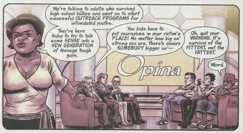 The kid is funny, but in a real prison he would have been shanked in the prison yard for being a mouthy punk on page 12. End of comic.
