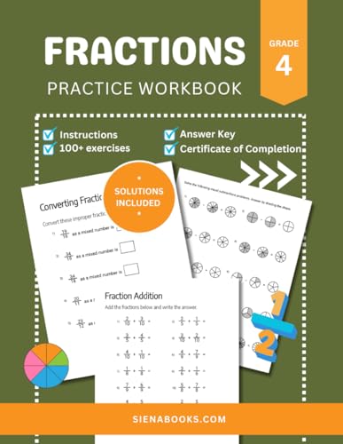 Fractions Workbook for 4th Graders - Master Fractions with Engaging Activities and Practice Problems!: 100+ Exercises with Solutions and Certificate of Completion