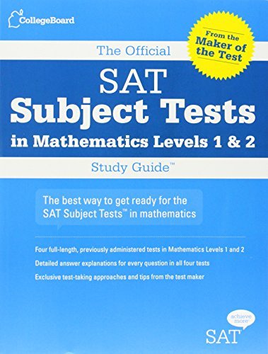The best way to practice for the SAT Subject Tests in Mathematics Every year nearly 300,000 high school students take an SAT Subject Test™ in Mathematics Level 1 or Mathematics Level 2. Many selective colleges recommend or require them for admission or placement. The Official SAT Subject Tests Study Guide: For Mathematics Level 1 and Level 2 from The College Board is the only source of official questions and answer explanations for these exams, and it is the only guide developed by the test maker. In addition to two full-length, previously administered practice tests for each exam level, this book also contains complete solutions, answer explanations, and test-taking strategies.