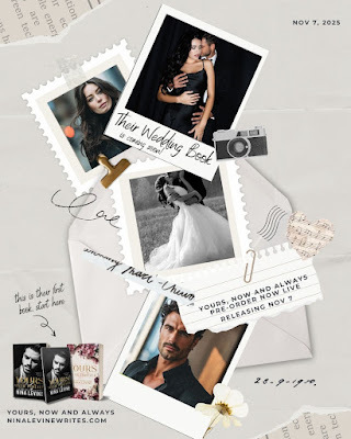 Yours, Now and Always is Gage & Amelia's wedding book written by the amazing and talented author Nina Levine. I was looking forward to this book and Nina doesn't disappoint, WOW!!!! You'll laugh. You'll cry. You will fell in love with Gage Black and Amelia Sinclair all over again. I was unable to stop reading once I started and didn't take a break until I reached the end. I don’t think I gasped, laughed, swooned, and genuinely been as entertained over characters like Amelia's brothers, specially Tim or Marin. Love all the couples together and the blending of two great families. I already can't wait for Hayden's book. Thank You Nina for such an outstanding book.