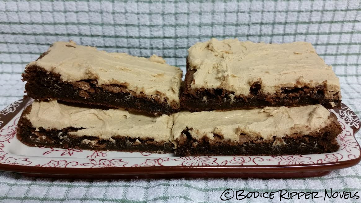 This is a chocolate brownie with peanut butter 'filling' that I used as frosting. It's supposed to have a layer of chocolate frosting on top of the peanut butter filling with chopped Reese's Pieces on top of that, but I left those two off. The batter has both melted semi-sweet chocolate and a little unsweetened cocoa powder. They're bitter and wet-looking, not at all like Sally's photo of them. I made half the recipe in an 8" square foil lined pan and baked for 22 minutes. The filling/frosting is very good but needed more milk to make it creamier, but the brownies themselves aren't good at all. I'd never make these again.