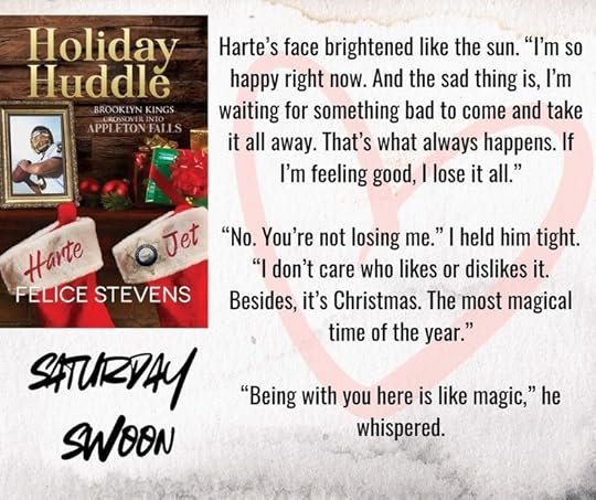 Holiday Huddle is such a sweet and spicy novella. It was a perfect little treat by Felice Stevens that introduces a new series. It also brought back some favorites from the Brooklyn Kings series.