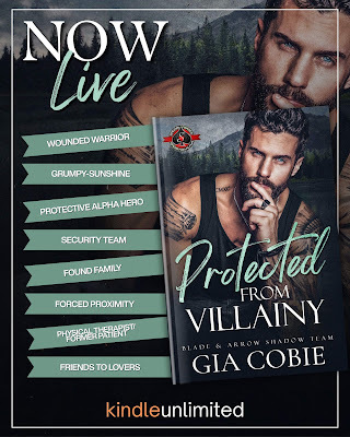 Protected from Villainy features a wounded warrior hero, a sweet and strong heroine with struggles of her own, forced proximity, found family, a security team of Army veterans, and plenty of sweet and steamy moments. Can be read as a standalone and an HEA guaranteed!