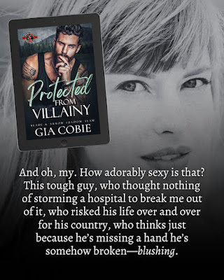 Protected from Villainy is book 2 of the Blade and Arrow Shadow Team series by Gia Cobie and she absolutely did it again with this book. I loved it! I love all the Shadow Team guys and the premise behind the Shadow Team so much. It's a little grittier, maybe slightly darker, than the original Blade and Arrow series and I love it! This book delivers on the action, suspense, spice, and of course, the love. This book follows Indy, our MMC, and Bea, our FMC. Indy is a former special ops soldier who was injured overseas and ended up losing his right hand and part of his lower right arm in an explosion. He had to leave the military and had to face several surgeries as well as grueling physical therapy after being fitted with a prosthetic. He faced many a day of self doubt, often feeling worthless at losing such a crucial part of his body. But after lots of talks with Cole, the founder of B&A, Indy realizes he's still valuable and can contribute to the team. He moves from Washington, DC, where he was doing his physical therapy, to the pacific northwest to join the Shadow Team. Bea was Indy's physical therapist in DC. She works at the VA, helping injured veterans as they recover from injuries. She has her own insecurities, as she has cochlear implants after losing her hearing. But she uses her disability to help her empathize with her patients. Shockingly, one day at work, she uncovers the dead body of her friend in the locker room area of her office and is arrested and considered the perpetrator of the crime. Indy hears about Bea's arrest and knows the sweet sunshine physical therapist that he believes truly helped save his life when was in the depths of depression after his injury, could never have killed anyone. He and members of his Shadow Team head to DC to break her out of prison and bring her back to B&A and into hiding while they track down the real killer. This novel had all the suspense and action you can expect from Gia Cobie. There's also lots of spice in this one and of course, if you love the way Gia writes our leading men, you'll love this one. Indy was perfection. If you like page-turning action and romantic suspense, coupled with a sweet and spicy love story with two strong main characters at the helm, this one's for you. I highly recommend this book as well as the entire series. Can't wait for the next one!