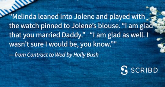 Now, Jolene finally has a chance to start anew, but because of her past, she can't take at face value what is right in front of her. She constantly looks for reasons to dwell on the sorrow and the loss, instead of grasping the good. Max, the ever patient husband, knows Jolene has suffered greatly, although he doesn't know all her secrets, he is willing to put his past behind him and solidify his new family. Will these star-crossed lovers find their way? Read Contract to Wed, by Holly Bush to find out.