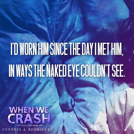 Cynthia A. Rodriguez gives us more than just an angsty romance, it is clear she has poured her own heart and emotions into this book and it is clear from this rambling review that I am completely enamored with this read. When We Crash is a story of heartbreak, loss, forgiveness, addiction, and time...more than anything, it's about time. Dexter and Noa are given time, time to find one another, but time doesn't always fix everything. Time brings distance, changes, new love, loss, death, and life. Though they've been given this chance it is up to them to take advantage and sometimes two souls crash together and even time can't stop the wreck. It's a raw story, completely unpredictable with the pages filled with love so intense, but no secure place for it to hold onto.
