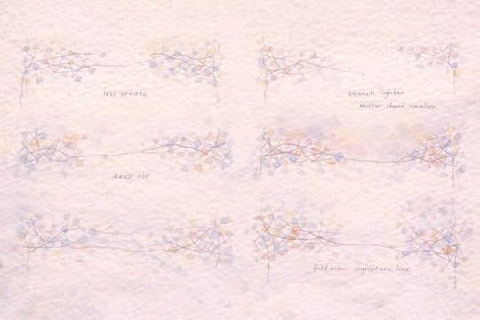 Border studies testing how branching consciousness and shattered light could frame the final image without tightening it into decoration.