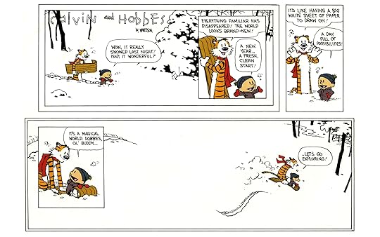 I prefer the strips that are not crazy dinosaurs on the planet Zoirbsky sequences, so the Calvin and Hobbes Sunday strips are some of my least favorite.
