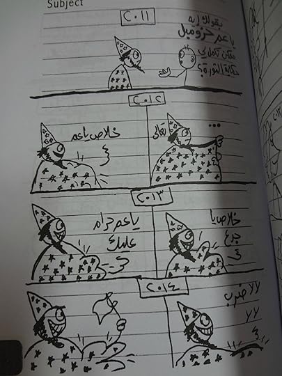 مجموعة كوميكس ظريفة ومسلية ربما لم تكن كلها على مستوى واحد، قليل منها فقط هو ما رسم الابتسامة على وجهي، ومعظمها بدا مألوفاً بشكل أو بآخر، ربما افيهات قديمة أعاد الكاتب نشرها، أو نشرها على مواقع التواصل الاجتماعي من قبل وقرأناها كثيراً لذلك بدت مألوفة ولم تعد تثير الضحك لم يعجني أيضاً نهاية بعض الكوميكس والتي كانت عبارة عن شتائم، وتكرار عبارات مسيئة معينة