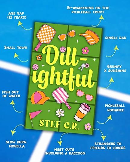 Did I ever think I would read a sports romance book about pickleball? No. But did I love every second of it? Yes I did! This was a quick but very cute read. Milo and Benny are so cute! I fell in love with them immediately. They've got that grumpy x sunshine dynamic going on and it was perfect. I liked how obsessed Milo was with pickleball, which I think is very accurate to real pickleball players. It's not just a sport but a lifestyle. That being said, it wasn't sports heavy. It was still very much centered around their romance. There are also some great side characters including Benny's daughter, his best friend, and a racoon. Stef has also hinted at a sapphic romance featuring some of the side characters and I'm here for it! Overall this was a really cute novella but I wish there had been more because I couldn't get enough of them. Please check it out!