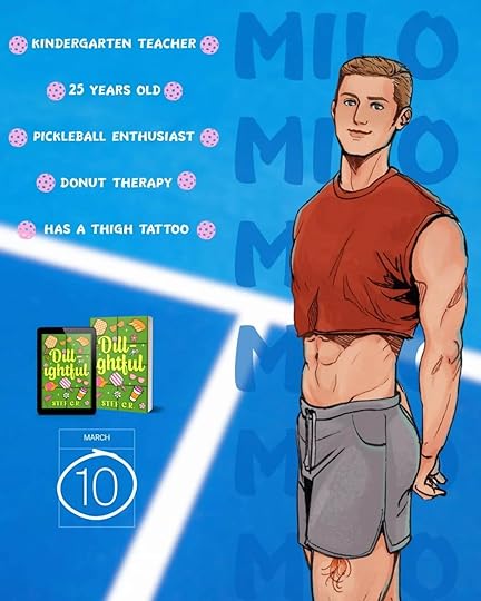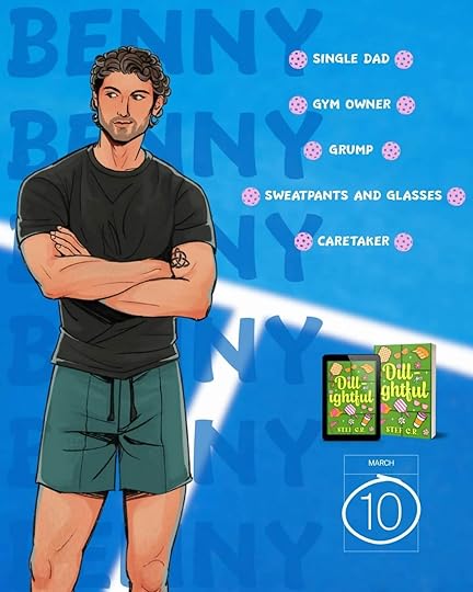 Ever since reading Heated Rivalry I feel like my eyes have been opened to sports romance so when I saw an MM pickleball novella I knew I had to give it a try. I’m so glad I did because this one was such a cute feel good story.The book takes place in the small town of Cold Water, Michigan and follows Milo Van Der Meer, a 25 year old teacher who unexpectedly finds himself living with and taking care of his grandma after his parents go to prison for fraud. Milo spends most of his time around kids and helping out at the local gym and he’s feeling pretty stuck in life with no real social circle or dating prospects.Everything starts to change when he runs into one of his students and her very grumpy dad, Benny Miller. Benny is a gym owner who mostly keeps to himself and focuses on three things: his daughter, his gym, and his best friend. But when Milo literally stumbles into his life, Benny suddenly isn’t sure what to do with the sunshiney pickleball enthusiast who keeps showing up in his everyday life . What starts as curiosity slowly turns into something deeper as the two begin to open up to each other.This story was just adorable. I loved the grumpy/sunshine dynamic between Benny and Milo and the small town vibe made everything feel cozy and charming. It’s a quick read but still manages to give you lovable characters and a sweet romance that’s easy to root for. who wouldn’t love an MM pickleball romance? Highly recommend if you’re in the mood for something light, fun, and heartwarming. Or just love sports romance in general. Comes out March 10th.