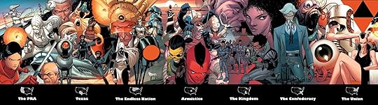 Story (4/5): In this volume Death’s Son starts his journey, and his reprogramming to become The Beast is initiated. Meanwhile, the Texas Republic has been decimated by The Hidden Nation but at a great cost. The Hidden Nation seeks alliance with the PRA and Death revisits his wife in PRA. This book includes an excellent map and in depth explanations of each of the seven nations that the United States has been broken into, this was really really helpful in understanding the overall story. The story is a bit choppy but it’s interesting enough to keep me engaged.