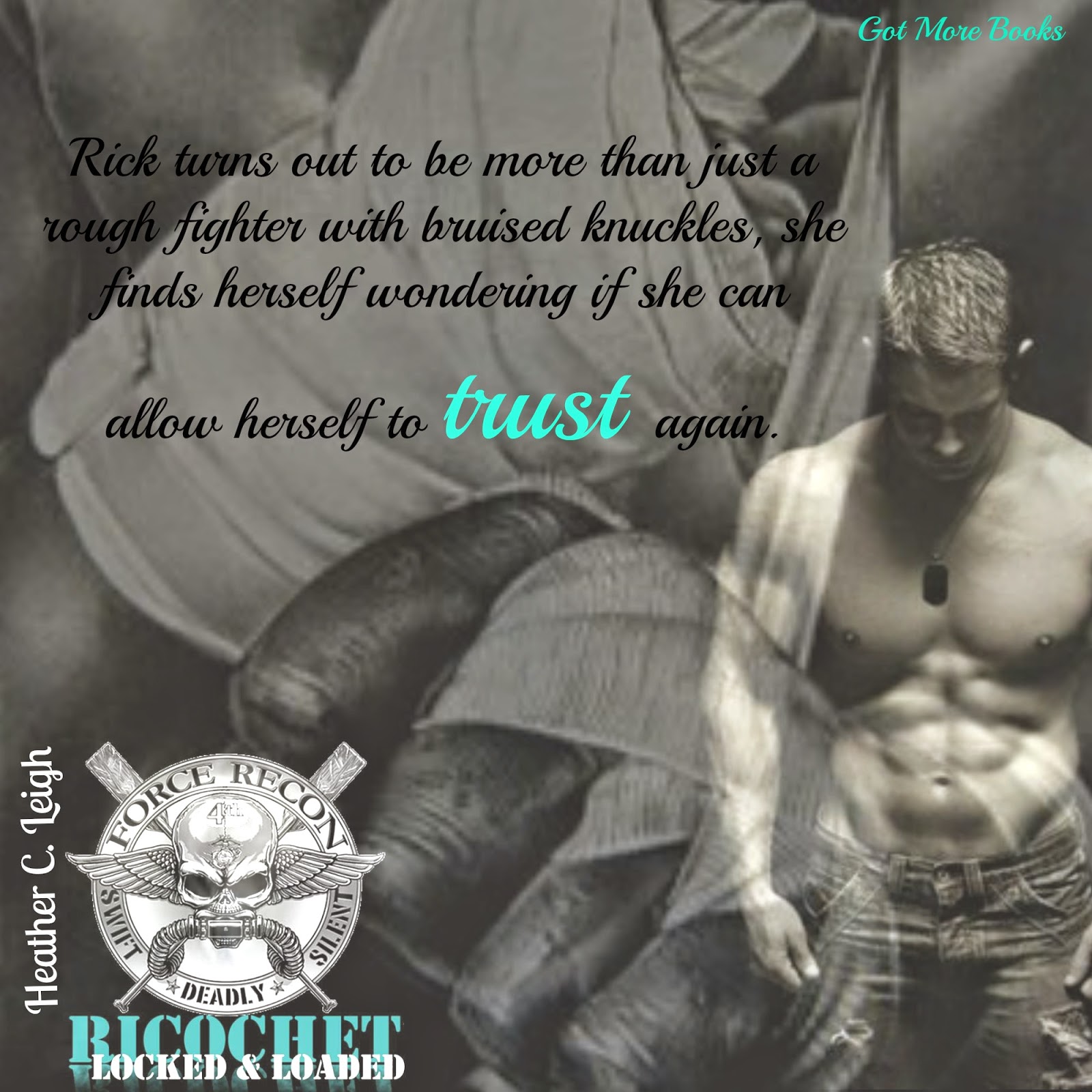 In RICOCHET: LOCKED & LOADED Heather C. Leigh tries her hand at a military romantic suspense in this novella series. I have to tell you, she gave it her special HCL finesse and had me absolutely hooked on the story of domestic violence escapee Quinn and Rick, one of the MMA fighters/secret military men of Sanctum.