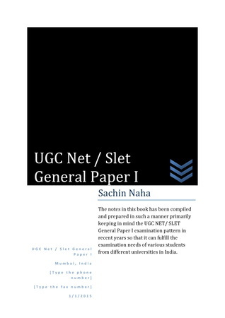 The notes in this book has been compiled and prepared in such a manner primarily keeping in mind the UGC NET/SLET General Paper I examination pattern in recent years so that it can fulfill the examination needs of various students from different universities in India.
