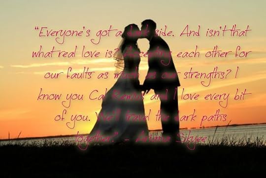 Cal, who if you've followed my reviews you know he's not my favorite, grew on me as well. He's got a better hold of his temper as his hormones start to settle after everything that was done to him on Novo. On top of that his memories are back as well. His love/obsession for Ari is still there, along with his insecurity in her love for him. BUT he does a big thing, or maybe a rash thing when he tells her he's making the decision for her. Read the book and you decide ;)