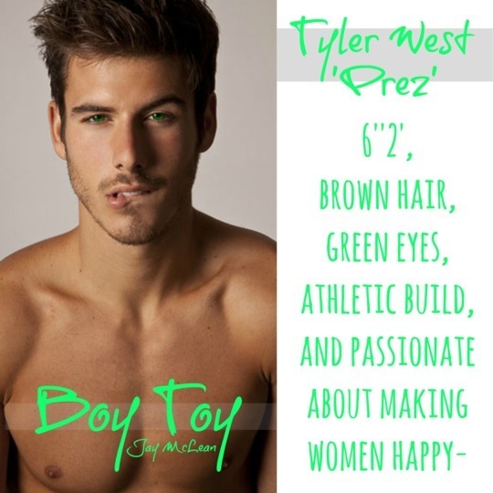 Prez—that’s me—also known as Tyler West. 6”2’, brown hair, green eyes, athletic build, and passionate about making women happy—or at least that’s what my profile says.
