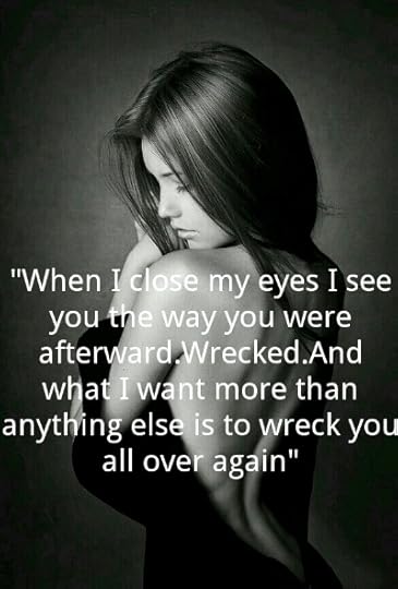 I dream about tearing that dress off your body. When I close my eyes I see you the way you were afterward. Wrecked. And what I want more than anything else is to wreck you all over again.