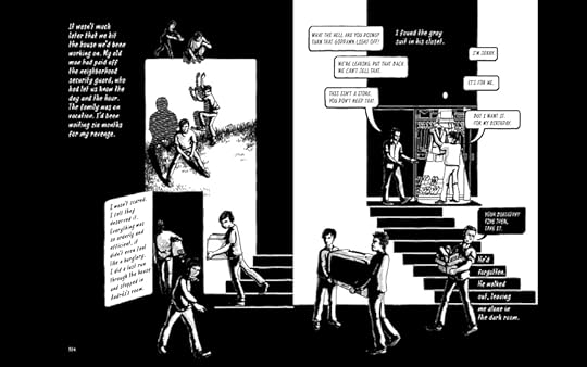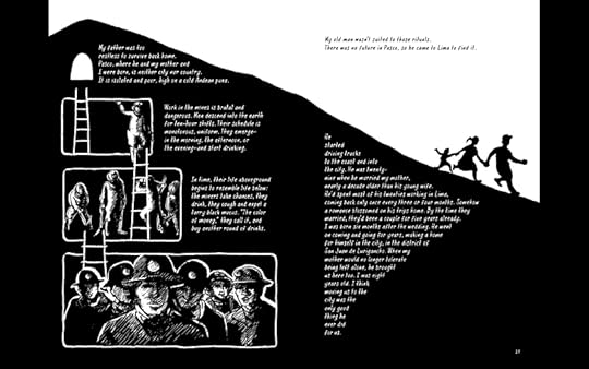 This is a short story that became a graphic novel. The graphics are amazing. The story is dark, about a young journalist, who recounts his life growing up and his family's life in Lima, Peru. He explores who he has become as a result of family and society.