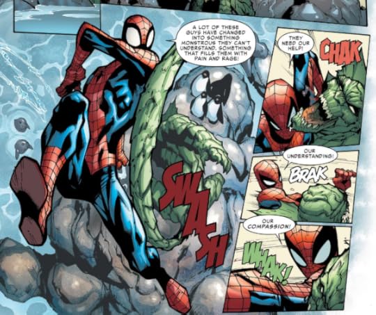While Dan Slott’s era of Spider-Man has its highs and lows, I will happily state that I enjoy his fast-paced stories (I Killed Tomorrow, in the Trouble On The Horizon hardback/TPB, being a personal favourite that plays to the man’s strengths as a creator) and the way he invests so much energy into his stories – you can tell he’s excited to be writing these and some of that excitement inevitably transfers to the reader, even when that same reader is scratching their head over plot contrivances or other literary booboos. But I’ll always remain guardedly optimistic that he can, at the very least, turn in an entertaining story.