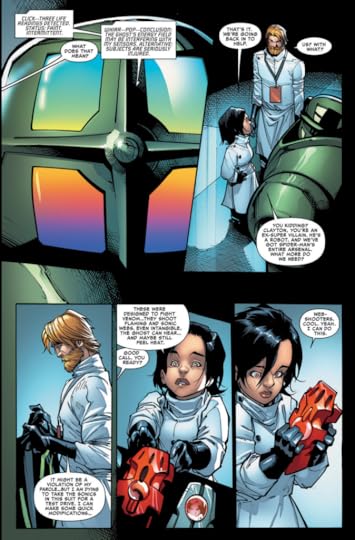 I do have to talk about Sajani, though: back before Horizon Labs became (Spoiler spoiler) Alchemax, she was a stubborn, blunt, but ultimately human character, whereas ever since Pete got his body back, it seems like it’s been decided that Sajani should attempt to negate everything Peter says or does, like a reverse echo chamber. (At the very least, she does have an excuse in that she wanted to focus Parker Industries on cybernetics, which was Ock’s field of expertise, while Peter wants to fund and design a rehabilitory prison for super-criminals.) I was tentatively okay with that until Graveyard Shift, when Sajani attempts to actively partner with the super-terrorist to wreck Pete’s plans. The Ghost’s reaction (It doesn’t go as she hoped) could very well be considered a logical redress to Sajani’s hubris and the fact that she just crossed a moral Rubicon by trying to side with a super-villain, but nothing is made of it. Come on, anything to surprise us: maybe while trying to negotiate with The Ghost, she could see a more human side of him for a moment and realizes that maybe Peter’s idea of reforming villains has merit. Something, anything that counts as character development beyond “alpha bitch”.