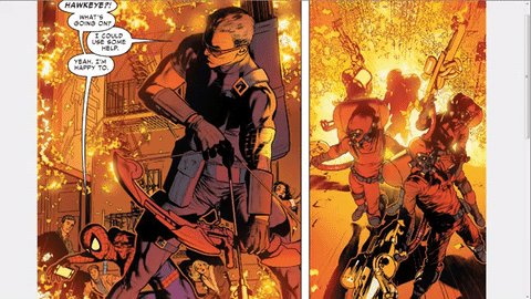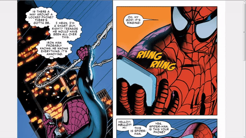 Once The Ghost attacks Parker Industries, it’s quite a fun arc: not only does the antagonist character just have a cool aesthetic to my eyes, but the action-heavy segments make full use of Ramos’s vivid art and feature Pete, Anna Maroni and Sajani working to their own ends to try and avert the catastrophe.
