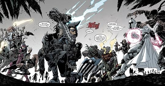 I enjoyed the premise of the book. A "squad" goes on a government mandated "suicide" mission to bring back proof of the red skulls demise. The team consists of some heavy hitters. People like Lady Deathstrike, Electro, Magneto, Winter Soldier, and a couple of others. They are thrown into what is known in battleworld as "the dead-lands" which is densely populated by Marvel zombies, ultron robots, and annihilus' army.
