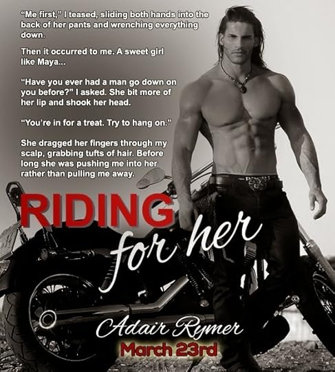 Riding For Her is a standalone MC Novel that's chock full of steamy sex, nail-biting violence and heart-racing adventure in a way that only Adair Rymer can provide.