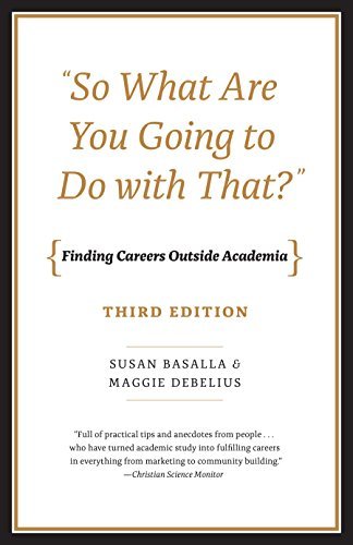 In this third edition of “So What Are You Going to Do with That?”, thoroughly revised with new advice for students in the sciences, Susan Basalla and Maggie Debelius—PhDs themselves—answer all those questions with a resounding “Yes!” A witty, accessible guide full of concrete advice for anyone contemplating the jump from scholarship to the outside world, “So What Are You Going to Do with That?” covers topics ranging from career counseling to interview etiquette to how to translate skills learned in the academy into terms an employer can understand and appreciate. Packed with examples and stories from real people who have successfully made this daunting—but potentially rewarding—transition, and written with a deep understanding of both the joys and difficulties of the academic life, this fully updated guide will be indispensable for any graduate student or professor who has ever glanced at his or her CV, flipped through the want ads, and wondered, “What if?”