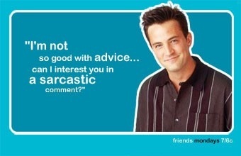 “I’m not great at the advice… can I interest you in a sarcastic comment?”Chandle Bing, Friends, “The One with the Tea Leaves”