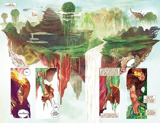 So Weirdworld isn’t Jason Aaron’s most cerebral comic! In fact it’s one of his rare misfires. It’s a Secret Wars tie-in that’s set on the floating island of Weirdworld above Battleworld where a Conan the Barbarian-type character traverses the strange landscape and comes across some familiar Marvel characters like Morgan le Fay and Man-Thing(s).