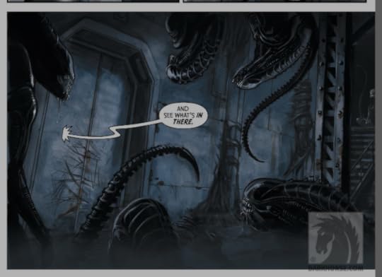 I enjoyed reading it, it wasn't scary in any way, but I didn't expect it to be scary. The Aliens are just not as scary when they are drawn as they are on the telly when you are watching the movies alone in a dark apartment with only your cat as company...