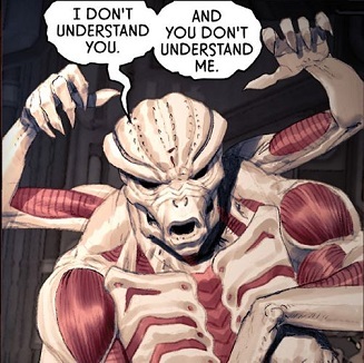 The future offers a new vision of what has become of LV-223 that builds on the events of Prometheus. The new characters are just as selfish and dumb as current characters from the David 8 saga, which makes them pretty much deserving of all the suffering and carnage that's coming to them. However, the Fire and Stone saga benefits from dumb characters with stronger motives. I was particularly fascinated by Francis, a man with cancer who is willing to do anything to find a cure, and Elden, a synthetic who falls victim to Francis' experiments, and becomes something incredible and superior to most creatures in this universe. We also have Ahab, an old predator looking for the greatest hunt (or The Most Dangerous Game, if you are a fan of Richard Connell). Lastly, we have a lot of Aliens and other fascinating creatures.