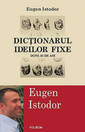 O carte insolita, un melanj intre Dictionarul ideilor primite de-a gata al lui Flaubert si inefabilul romanesc al celor douazeci de ani scursi de la revolutie. Din 21 decembrie 1989 si pina pe 9 mai 2009, dictionarul lui Eugen Istodor radiografiaza epoca tranzitiei romanesti, printr-un decupaj tematic ce reflecta, in prima instanta, preocuparile si obsesiile mai vechi sau mai noi ale mass-media, condensate in tot atitea clisee. Dictionarul ideilor fixe este si dictionarul ideilor fixe ale presei de-a lungul acestor ani. Insa din amalgamul de personaje, intimplari ori prejudecati ce compun spatiul nostru public rezulta in final, fragmentar si aparent haotic, o imagine edificatoare a lumii romanesti postcomuniste.