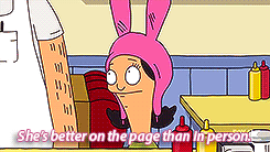 I am like grateful that Bob's Burgers exists on a daily basis. It is my go-to when I hate everything or am angry or anxious. It is the perfect cure for a case of the Sunday evenings.