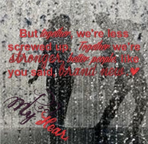 " ... But together, we're less screwed up. Together we're stronger, better people, like you said, brand new."