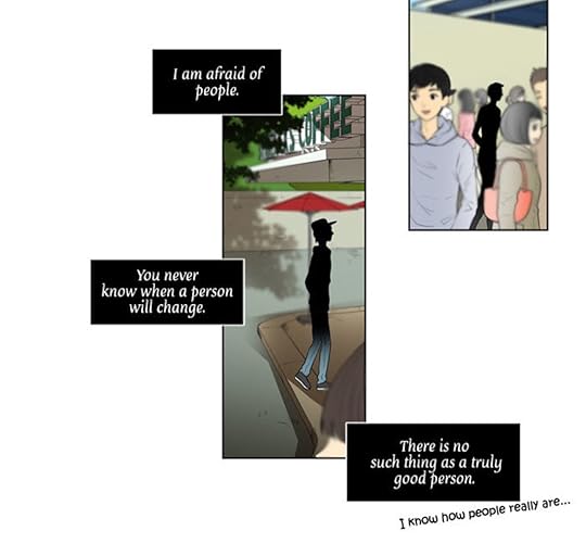 Personally I prefer Japanese manga over Korean manhwa, but webtoon is an exception. You can say it's manhwa, but at the same time it's not. The differences in drawing style, how the story told, and the character set give you a really different impact. I think webtoon has much more promising future than Korean classic manhwa (no offense to classic manhwa fans). Well, enough with my rambling. Just read Naui Binaneun Segye or My Beautiful World or My Shiny World (different scanlation groups may use different title) and perhaps you'll love it too!