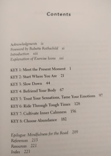 I can't do it. I guess I've learned that mindfulness + meditation books don't work for me while I'm driving. I get kind of frustrated when I can't follow instructions to close my eyes when I'm behind the wheel. Oh well.