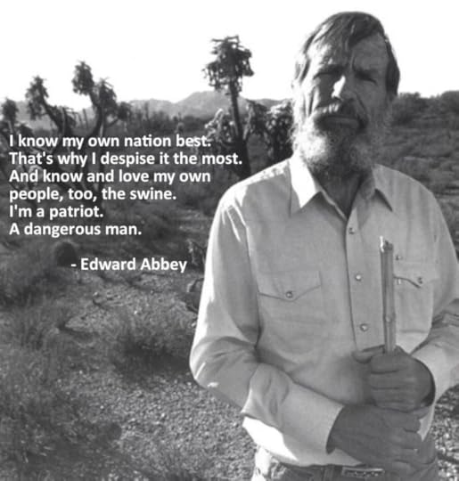 Cocky as a rooster. I told myself--you are an artist. An adventurer. A human man. Not some shoe store clerk, kneejerk liberal or kneepad Tory, insurance adjuster or group-encounter therapist or assistant professor of data processing at a vocational tech school. No androgyne with retracted balls & frightened pizzle. So I told myself: Arise, piss, pull on pants & boots. Build a fire.But with all of that, after drifting away from graduate school at Stanford, Abbey spent years "frittering away, playing the flute, reading Dreiser in the Utah desert, serving as a menial fire-lookout in Arizona, thinking of himself as the next Thoreau, drinking & wenching". Always, in the back & occasionally at the forefront of his mind was a desire to become a writer. Even when he begins to develop the craft of a writer, it is said that "he makes no distinction between the serious & the comic, the temporal & the eternal--mixing puns & meditations, ontology & fart jokes."