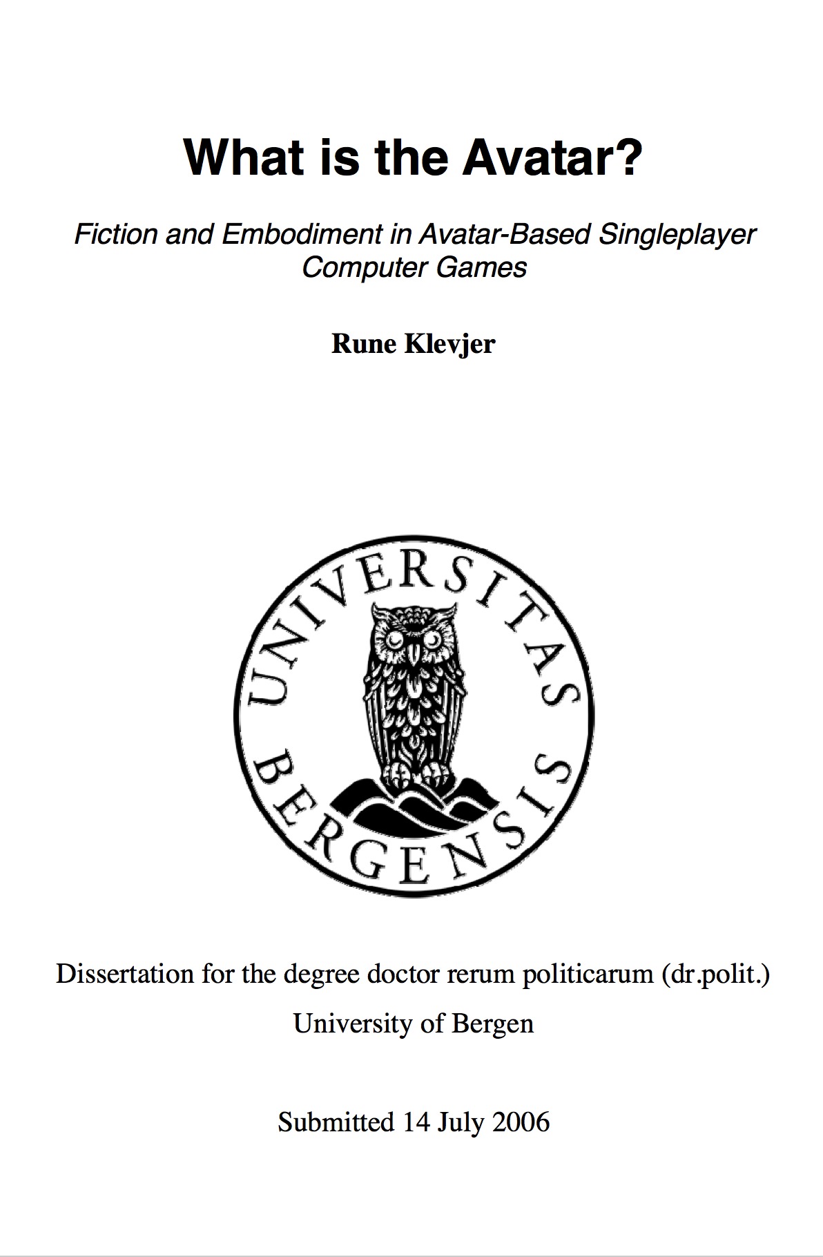 What is the Avatar? Fiction and Embodiment in Avatar-Based Singleplayer Computer Games.