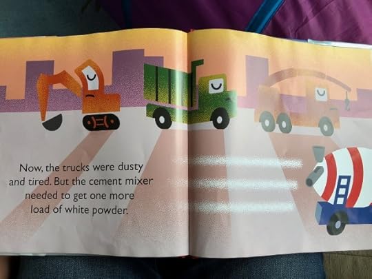 The book is cute and all, but how are the other trucks being helped if the little cement truck keeps making mistakes? The illogical aspects of the book were a bit too silly for me to ignore.